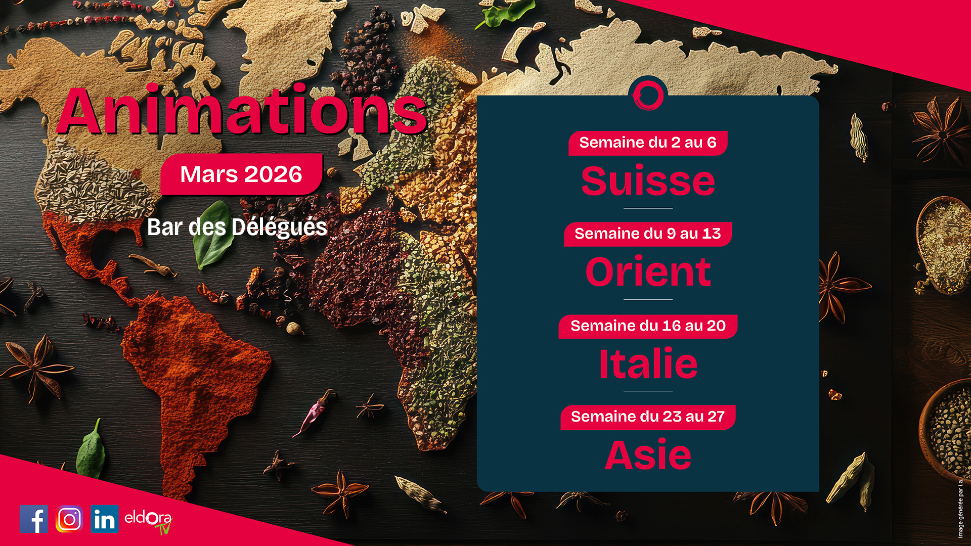 Plus d’une quarantaine d’animations locales ou internationales sont proposées annuellement au sein de votre service de restauration, garantissant ainsi un rythme soutenu et diversifié.